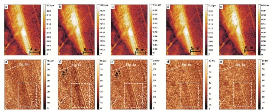One is a direct electrochemical detection via a capillary cell, developed by Suter et al. which, however, does not provide the resolution required here. Another approach is the use of Kelvin probe techniques, which allow detection of hydrogen in a material by means of the change ofwork function caused by the hydrogen entering the oxide at the surface. Studies at quite high resolution have been carried out with Scanning Kelvin Probe ForceMicroscopy (SKPFM), where diffusion profiles of hydrogen have been mapped successfully at relatively high resolution at cross section of samples after hydrogen charging.