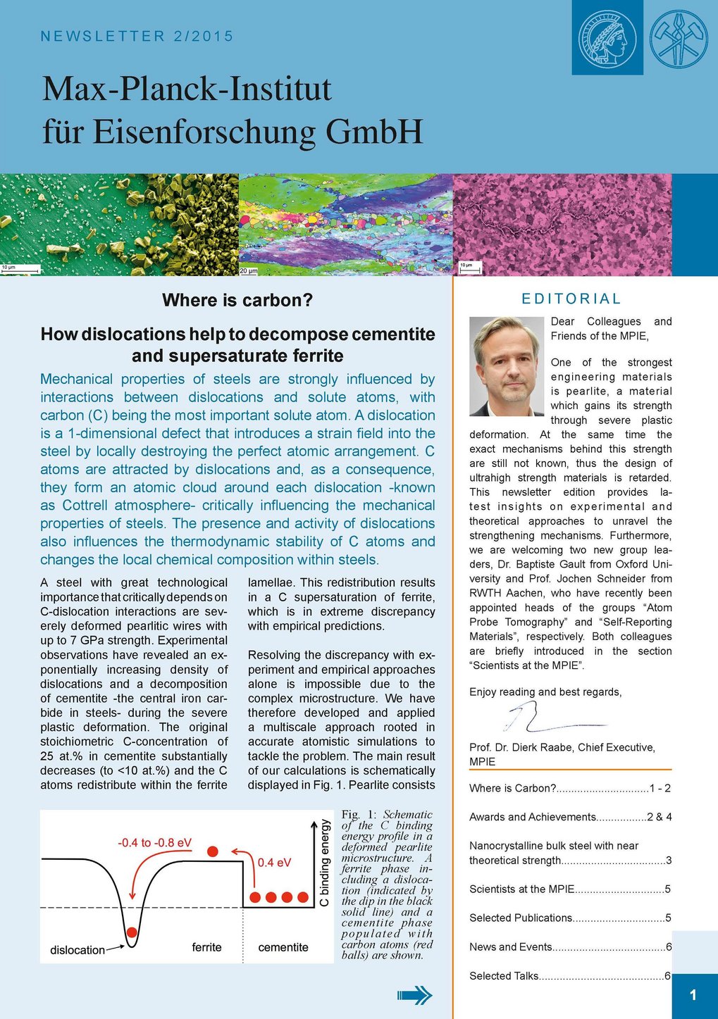 In der neuen Ausgabe des MPIE-Newsletters dreht sich alles um das Thema perlitische Stähle. Zudem werden zwei neue Gruppenleiter, Prof. Jochen Schneider und Dr. Baptiste Gault, vorgestellt.