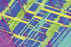 Gefügebild einer Kobalt-Niob-Legierung. Die Farben zeigen verschiedene Kristallorientierungen, die die Eigenschaften des Materials beeinflussen.