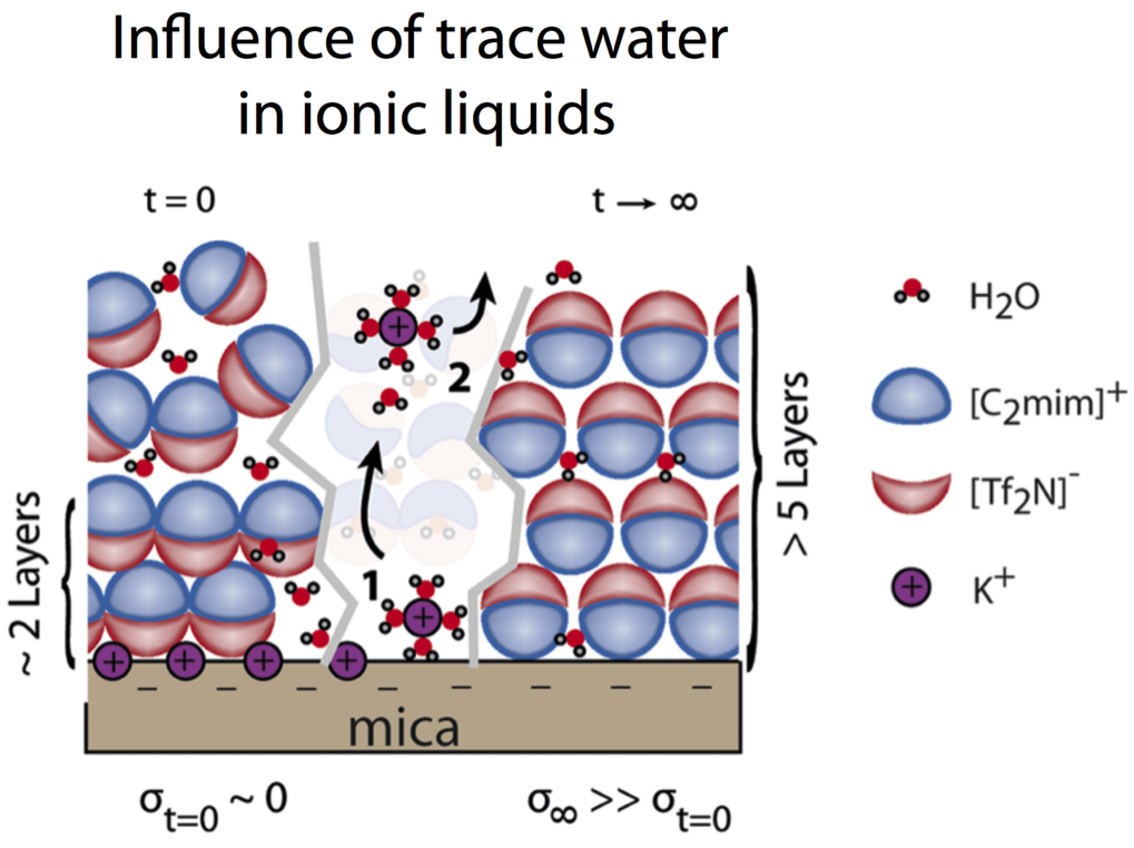 - Fundamental work on interfacial forces, interfacial structures and tribology under (electrochemically active) variable environmental conditions.